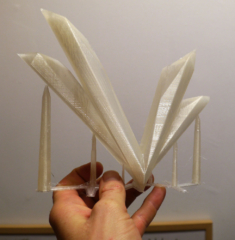 This prints are part of my latest artwork which combines both 3d Printing and CNC machining. It is roughly 5.5 ft tall, and made out of PLA printer filament and Redwood.